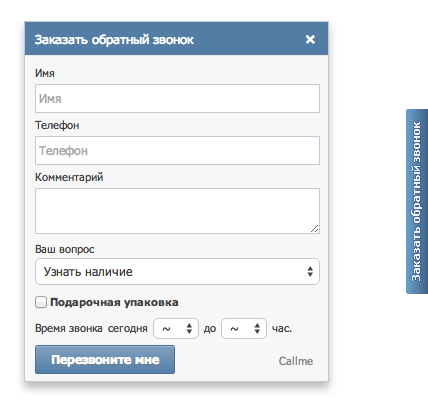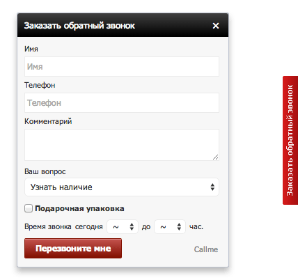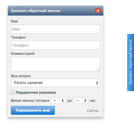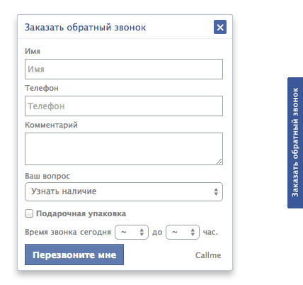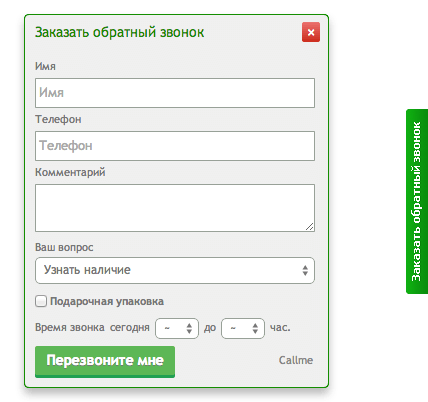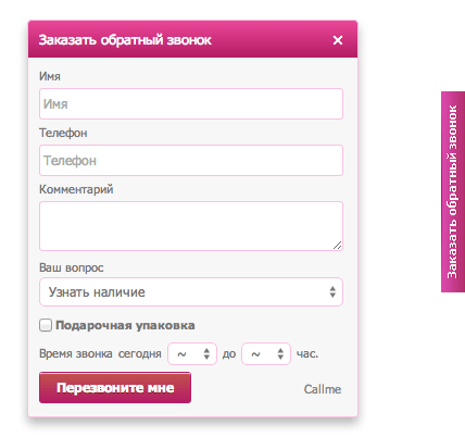 Давайте посмотрим, как работает Callme. Нажмите на любую из ссылок ниже. Кликайте на любую ссылку, чтобы показать форму заказа. Вообще на любую. Кликайте на любую из них повторно, чтобы форма скрылась.